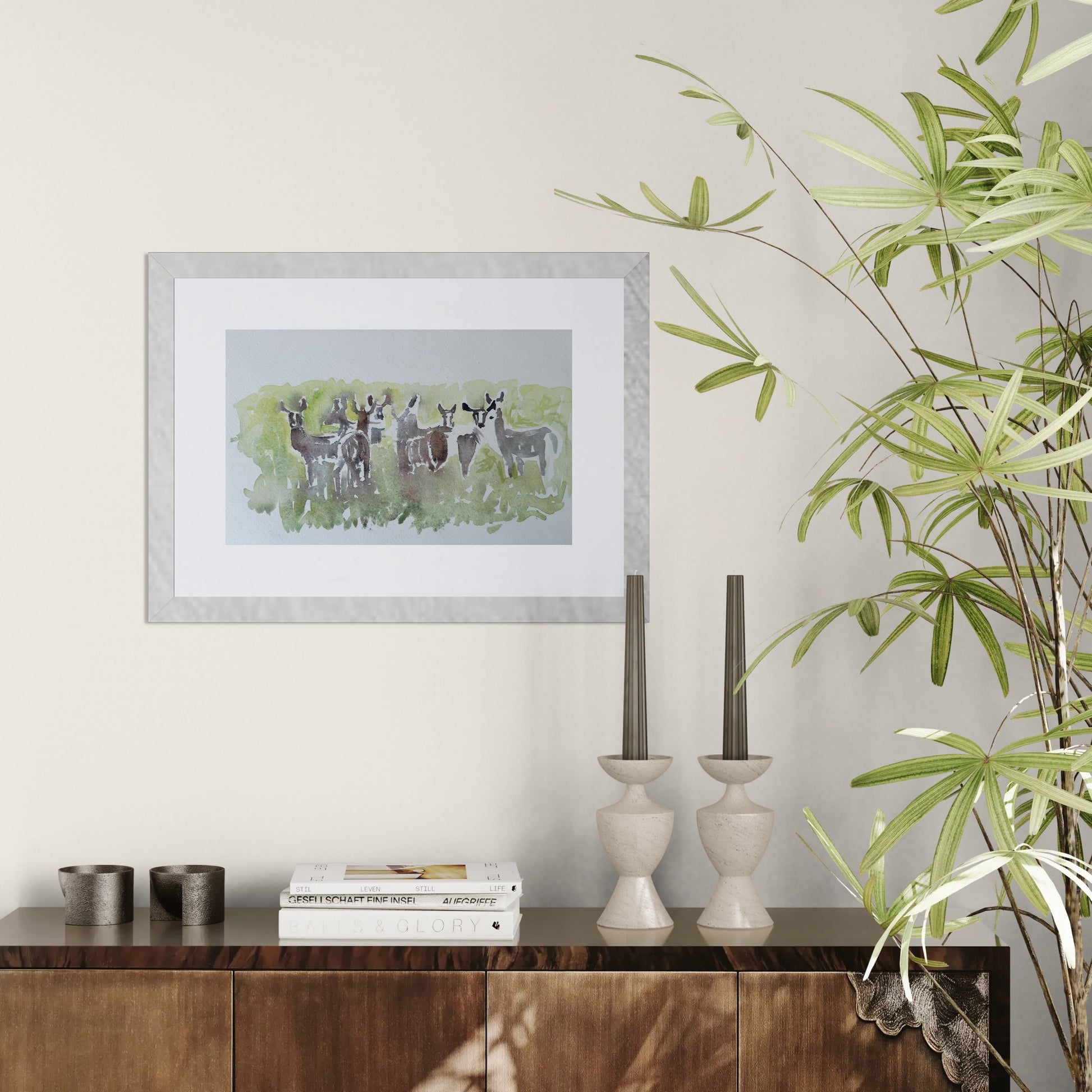 Akvarell, selve maleriet er 20x29 cm. Selges inkludert passpartout og sølvfarget ramme.